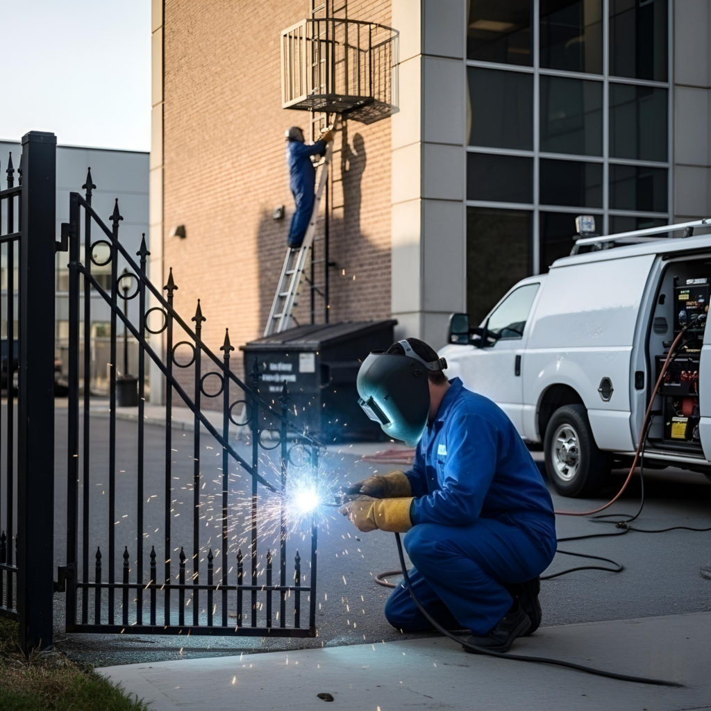 • On-site repair and construction of commercial-grade assets, including security gates, metal railings, and safety ladders.